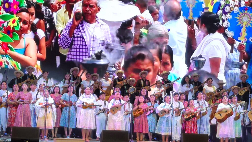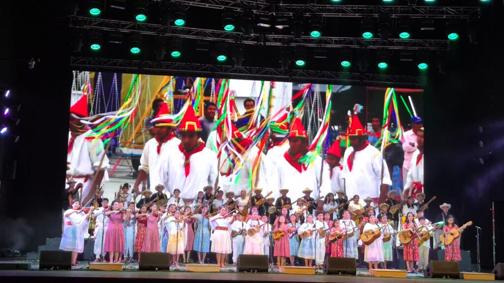 Los primeros versos a cargo de Evelyn Acosta de Caña Dulce, Caña Brava se escucharon fuerte: “ya está listo el escenario, las arpas y los violines ya dibujan los cofines de este instante extraordinario”. Con la entrada triunfal de los artistas, el escenario se llenó de color y de pasión con las interpretaciones, y sus “portadores” llevaron al público los ritmos tan conocidos y reconocidos de Veracruz, orgullosos de sus lenguas y culturas.