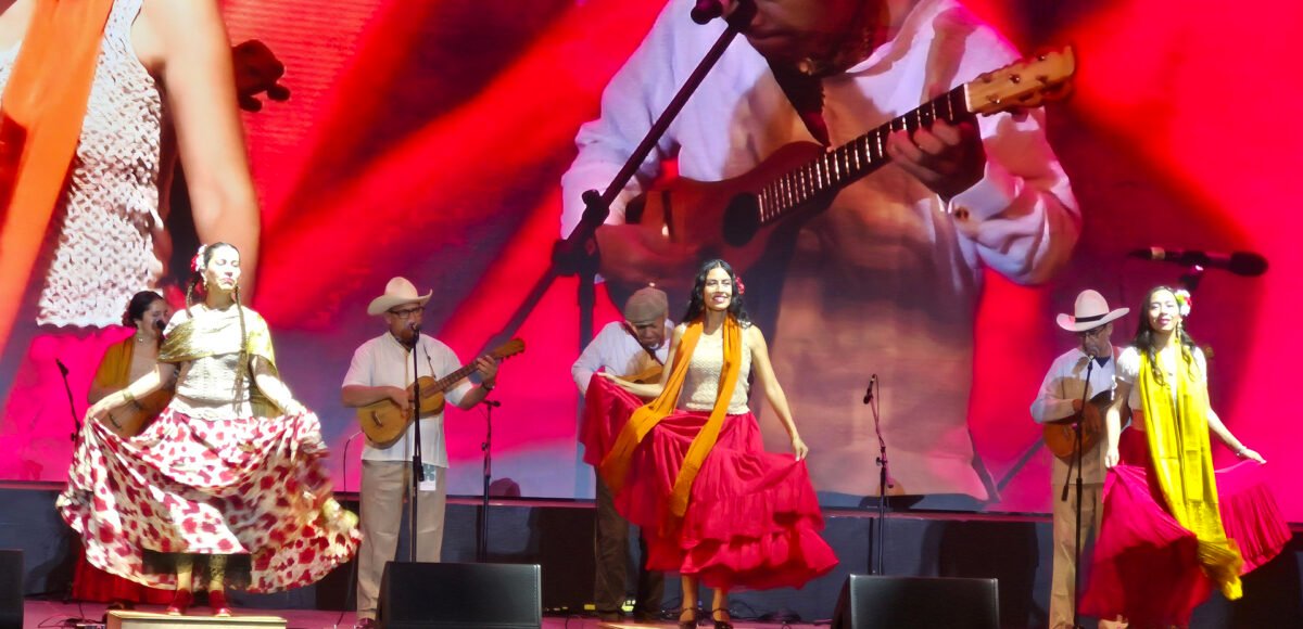 Los primeros versos a cargo de Evelyn Acosta de Caña Dulce, Caña Brava se escucharon fuerte: “ya está listo el escenario, las arpas y los violines ya dibujan los cofines de este instante extraordinario”. Con la entrada triunfal de los artistas, el escenario se llenó de color y de pasión con las interpretaciones, y sus “portadores” llevaron al público los ritmos tan conocidos y reconocidos de Veracruz, orgullosos de sus lenguas y culturas.